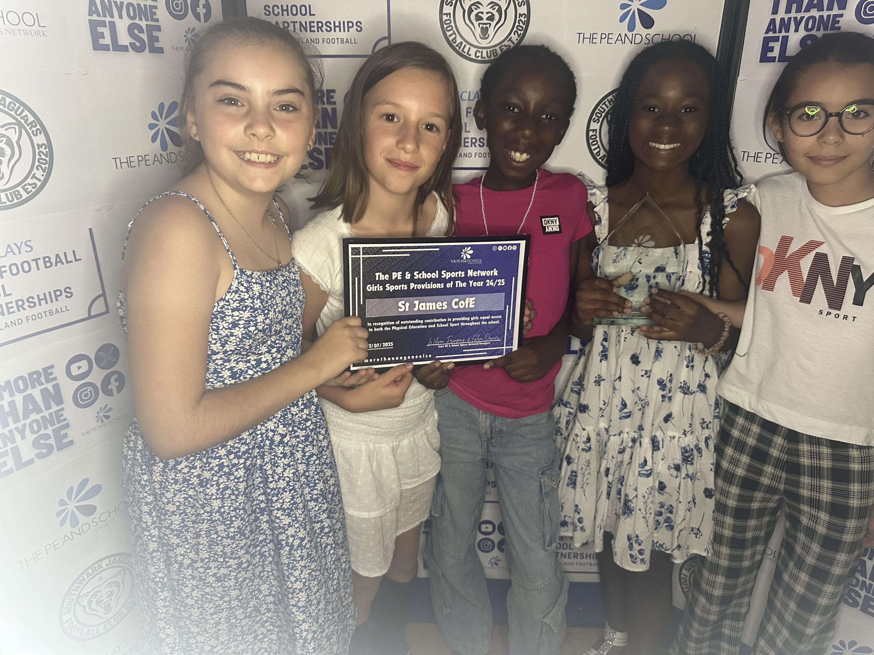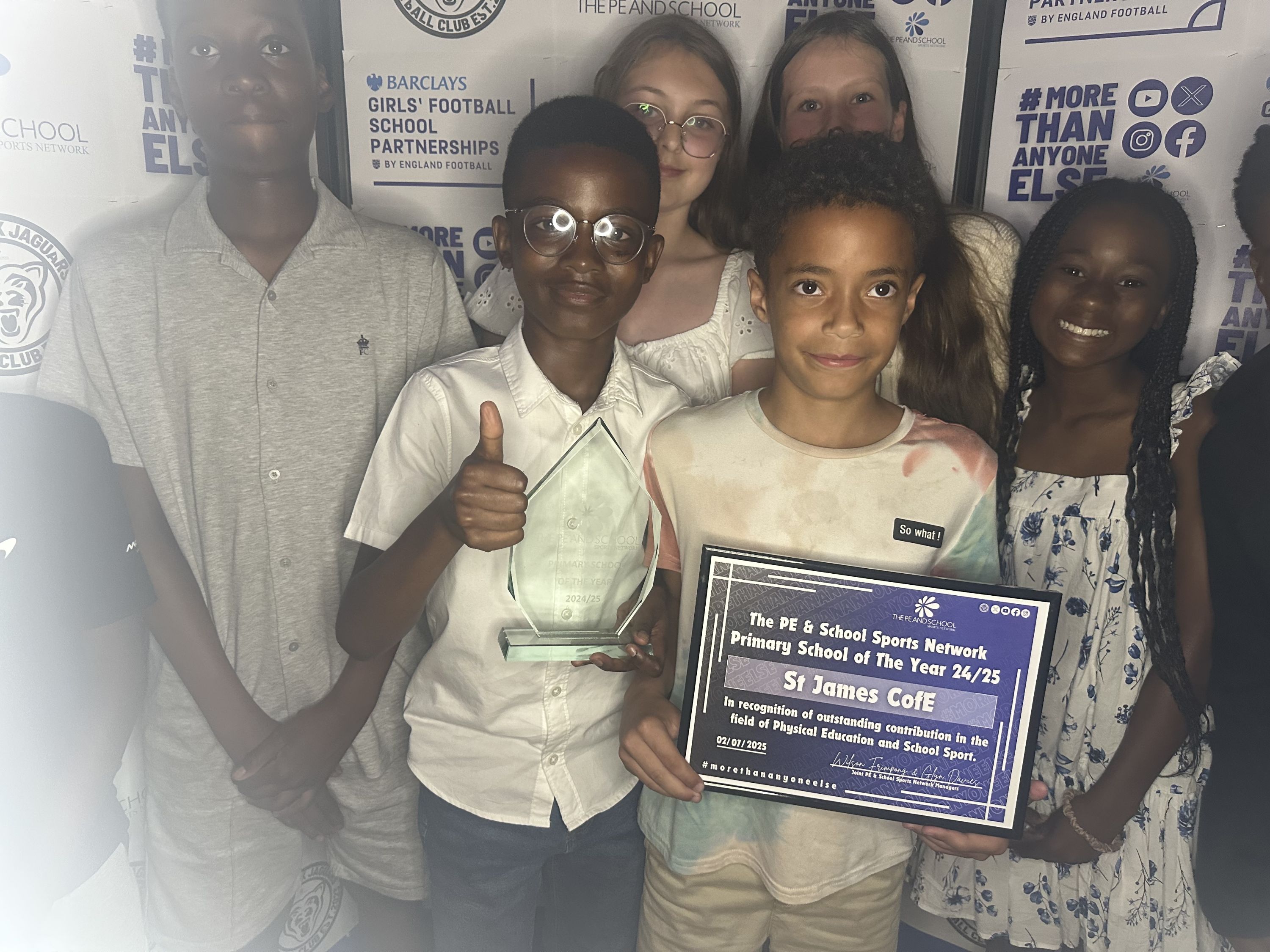 Our aim at St James’ CofE Primary is to create confident, independent, life-long athletes. Throughout a range of different sports and activities, the children are able to learn to work both independently, but most importantly, as part of a team, all while developing relationships and learning new skills. While children look forward to the new sports they will learn within their PE lessons, we know that there are many other benefits and experiences that can come from sport. PE teaches independence, communication and teamwork and strengthens values that can be taken forward throughout the children’s lives. Each week we focus on a “value of the week” and recognise a child who has demonstrated these important values who will be presented with the PE award, given to them in front of their peers at our weekly celebration assembly.